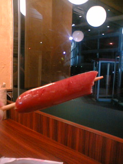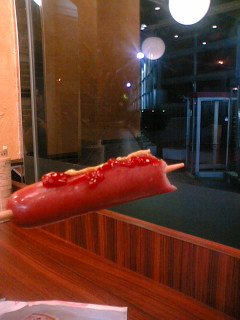 へへっ♪ フランクフルトたべちゃおーっと。 うまいうまい。
